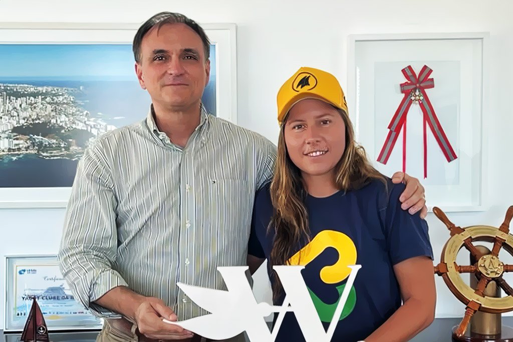 Nesta terça-feira (10), Juliana Duque e seu parceiro de campanhas olímpicas e pan-americana Rafa Martins foram recebidos na sede do clube em Salvador (BA), pelo comodoro Ricardo Dantas.