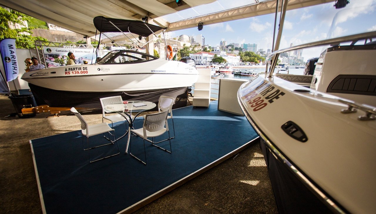 Além disso, há um ambiente exclusivo para música, gastronomia e entretenimento, no qual os visitantes contemplam o pôr do sol mais bonito da cidade.⠀A edição deste ano no Terminal Náutico da Bahia tem 2.500 m² de área para exposição seca e 200 m para exposição molhada.
