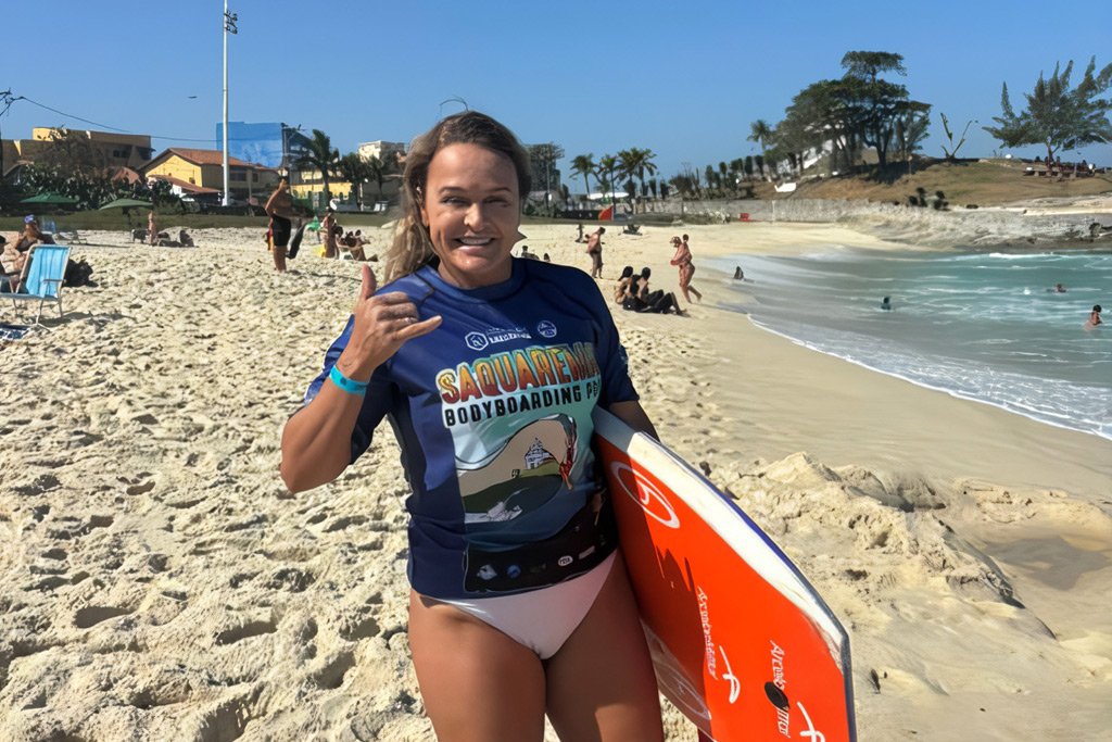 A etapa de Saquarema termina neste sábado (20), na Praia da Vila, com as quartas de final, semifinal e final. Neymara, 48 anos, vai em busca de uma vaga na semi em bateria com Maira Viana, atual líder do Circuito Mundial e que está disputando o título brasileiro de 2024. Neymara, sétima do mundo, foi convidada pela Confederação Brasileira de Bodyboarding, participando apenas dessa etapa.