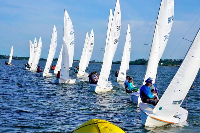 A largada da primeira das oito regatas previstas ocorreu no sábado passado (15) na Lagoa dos Esteves, Balneário Rincão, 20 km da cidade de Criciúma e a 300 da capital catarinense, Florianópolis. A competição foi vencida pelos velejadores Thiago e Felipe Berenhauser.