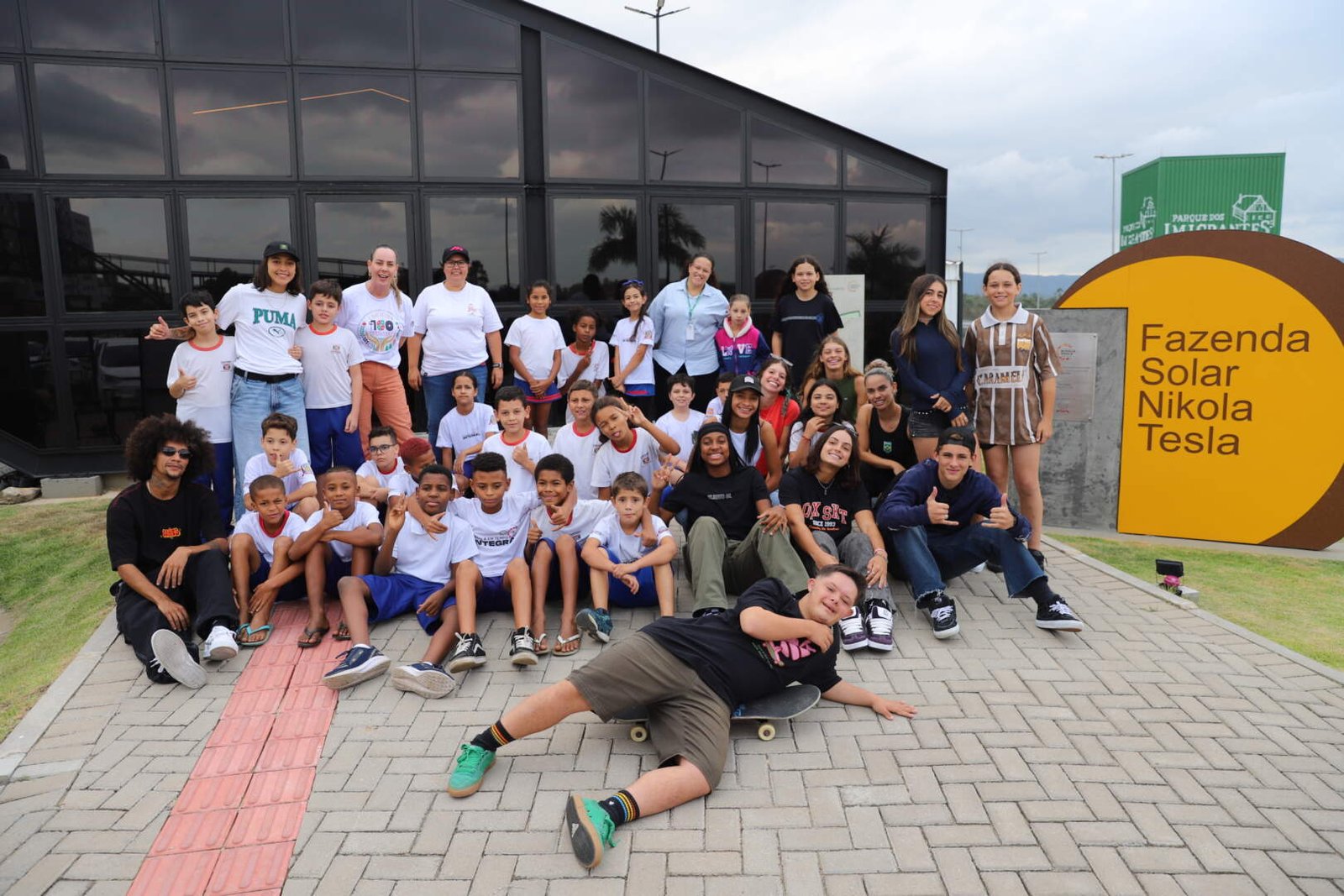 Os estudantes acompanharam os atletas durante uma visita à Fazenda Solar e ao Memorial Nikola Tesla, no Parque dos Imigrantes, localizado no distrito do Rio Maina. Depois de assistirem aos treinos para as competições no Skate Park, os alunos e skatistas seguiram em direção ao passeio, a bordo de 12 carros elétricos.