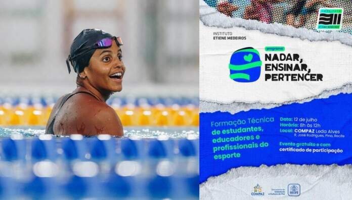 Julho, 2025 – Um encontro gratuito, com quatro palestras sobre prática esportiva, educação e pertencimento, será realizado neste mês de julho pelo Instituto Etiene Medeiros (IEM). É o “Nadar, Ensinar, Pertencer”, um programa voltado para a formação técnica de estudantes, educadores e professores de esporte. O evento está marcado para o dia 12, das 8h às 12h, no COMPAZ Leda Naves, em Pina, no Recife (PE). E terá entre seus palestrantes a pernambucana Etiene Medeiros, nadadora olímpica e fundadora do IEM.