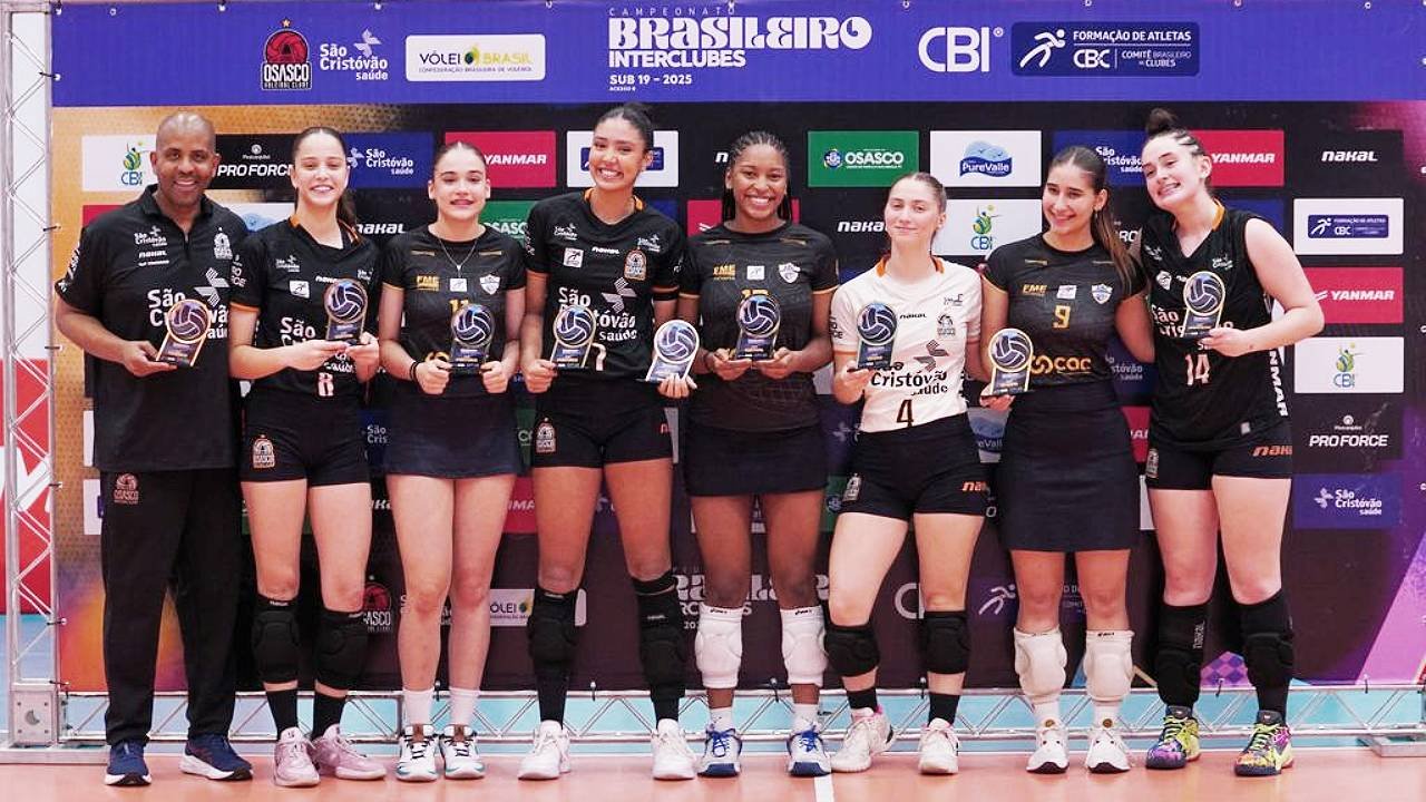 Novembro, 2025 – A base do Osasco São Cristóvão Saúde continua mostrando sua força. Depois do time sub-21, agora é a vez do sub-19 levantar o título do Campeonato Brasileiro Interclubes (CBI). E foi uma conquista invicta, com seis vitórias em seis jogos, sem ceder nenhum set. A última, neste domingo, na Cidade do Vôlei, em Osasco, sobre o Vôlei 5, de Florianópolis. O placar da final foi mais 3 a 0, com parciais de 25/17, 25/18 e 25/18.