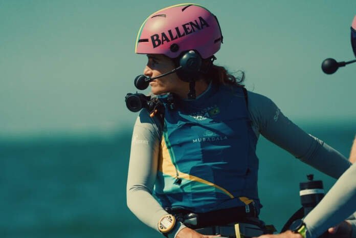 A bicampeã olímpica Martine Grael, primeira mulher a assumir o posto de driver (capitã) de um catamarã F50 na história do SailGP, foi uma das mentoras da clínica de vela Driving Change, voltada para velejadoras de alta performance como forma de dar continuidade ao legado feminino no esporte – crédito: AT Films